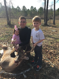 However, somewhere in between this picture and the next morning, both kids had come down with something... think constant coughing, runny noses, and sister had a temperature... ALL weekend. BUT daddy did hunt and shot a big one! So we had to go out and see it for ourselves. :)